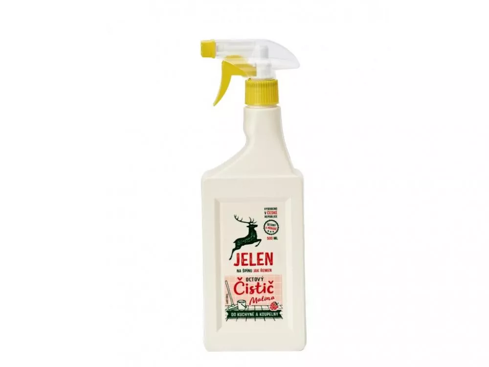Už Jelenova babička drhla vodný kameň a silnú špinu octom. Preto Jelenov čistič na báze octu v kuchyni aj v kúpeľni tak dobre funguje. Navyše vonia po malinovom octe, preto nie je taký štipľavý.