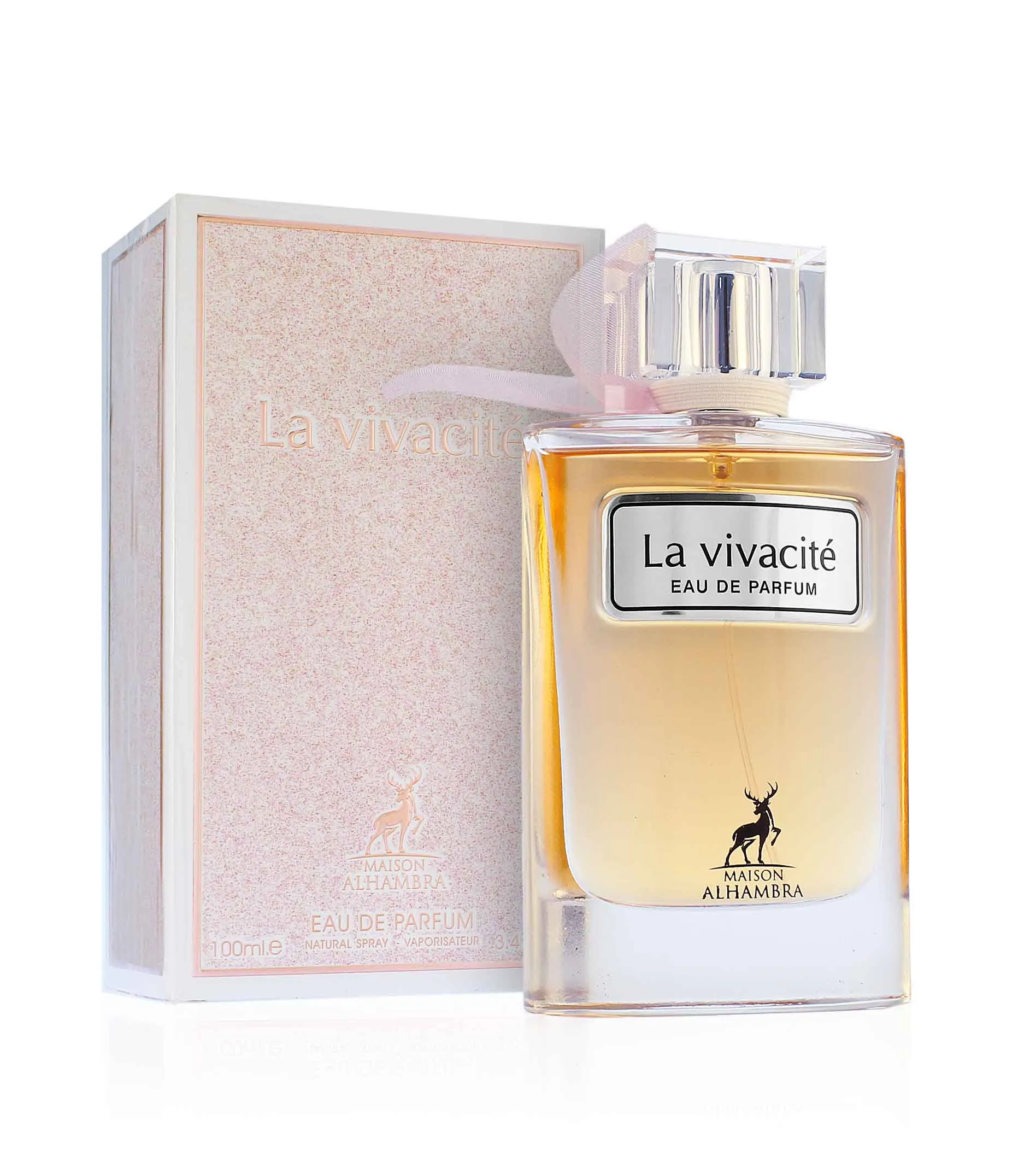 Maison Alhambra La Vivacité je parfumovaná voda pre ženy, ktorá oslavuje energiu, optimizmus a radosť zo života. Je to vôňa plná svetla, slobody a ženskej krásy. Svojím názvom evokuje živost, ľahkosť a pozitívny náboj, ktorý sa premieta aj do jej vonnej kompozície. La Vivacité je ako úsmev v parfumovej podobe – príjemný, nákazlivý a plný šarmu. Hodí sa pre ženu, ktorá je sebavedomá, elegantná a miluje vôňu, ktorá jej dodáva energiu a zároveň podčiarkuje jej jemnosť. La Vivacité je parfum, ktorý rozžiari každé ráno a premení všedný deň na malý sviatok.