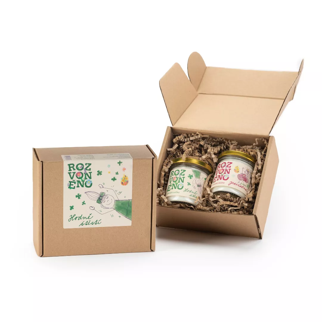 Poprajte šťastie originálne – rozvoniavajúcim darčekovým balíčkom, ktorý poteší obdarovaného aj našu planétu. Obsahuje dve 100% prírodné ručne vyrobené sviečky od moravskej značky Rozvoněno. V pohárikoch sa ukrýva iba smotanovo biely kokosovo-sójový vosk, čisté éterické oleje a knôt zo 100% bavlny.